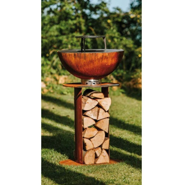 - Le rangement à bois complète parfaitement la conception brute et originale du braséro