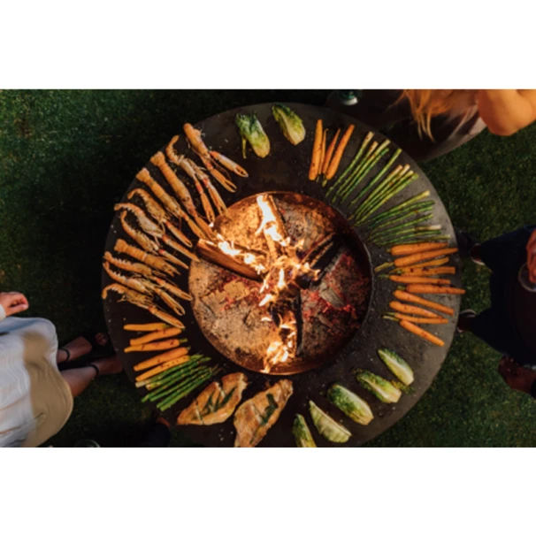 Convivial grâce à sa forme circulaire, l’appareil de cuisson OFYR fait bien plus que de cuire de délicieux plats.