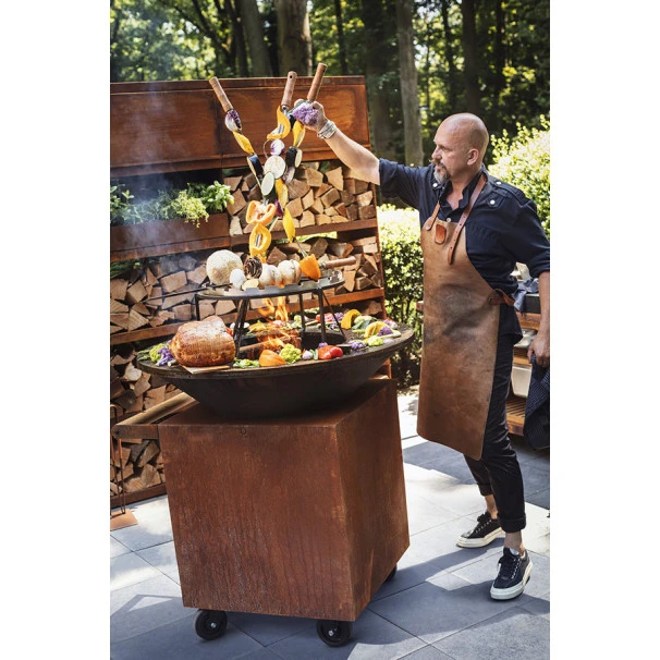 Pratique, ce braséro se transforme en plancha à bois à l’heure du dîner. Cette plancha design apportera un goût authentique à vos aliments.