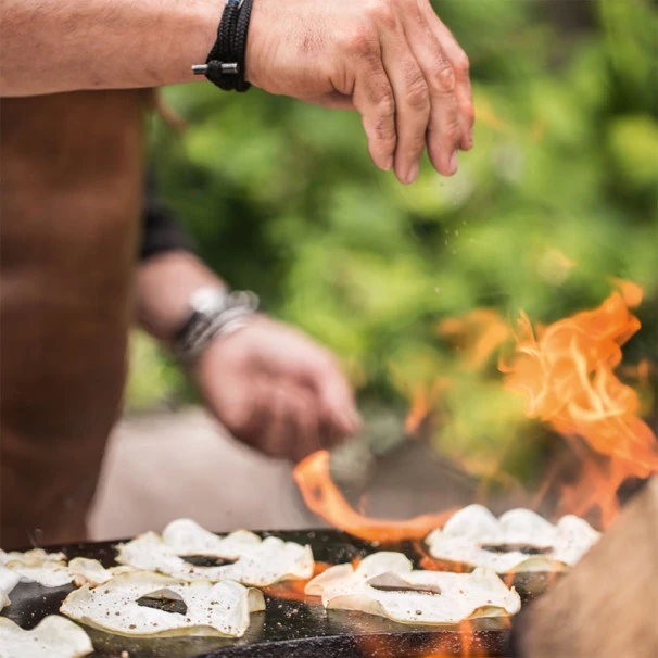 Ofyr va révolutionner votre façon de cuisiner en extérieur. La chaleur qui irradie depuis le centre se diffuse graduellement, créant ainsi toute une gamme de températures de cuisson sur une seule et même plaque de cuisson hautement performante. Les différentes zones de chauffe entre l’intérieur et l’extérieur de la plancha permettent de réaliser une cuisine variée.