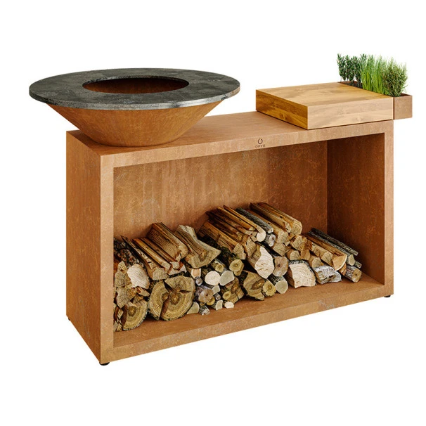 Pratique, cette plancha braséro possède une large surface de stockage pour y conserver plus d’une cinquantaine de bûches et les protéger des intempéries. Cette plancha est également dotée d’un plan de travail, idéal pour concevoir votre repas, déposer des ustensiles ou sauces.
