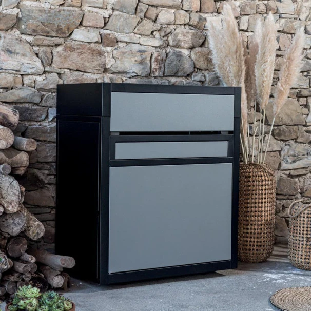 La partie inférieure du chariot est fermée par une porte « push to open ». En un coup de fesse ou une pression de main, ouvrez le compartiment pour accéder à votre bouteille de gaz ou à de la vaisselle, voire à des condiments qui sont conservés au sec. Juste au-dessus, le tiroir « push to open » vous permet d’avoir à portée de main vos ustensiles pour cuisiner.
