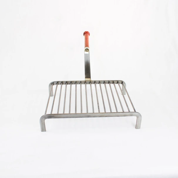 Cette grille de cuisson est équipée d’un long manche en acier pour éviter de vous brûler.