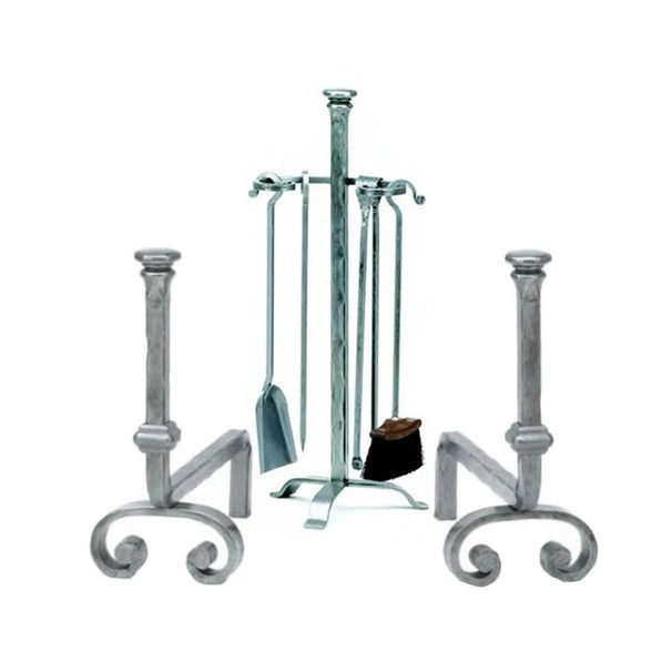 - Un serviteur tête aplatie et ses 4 accessoires : pelle à cendres, balai, tisonnier et pince à bûches