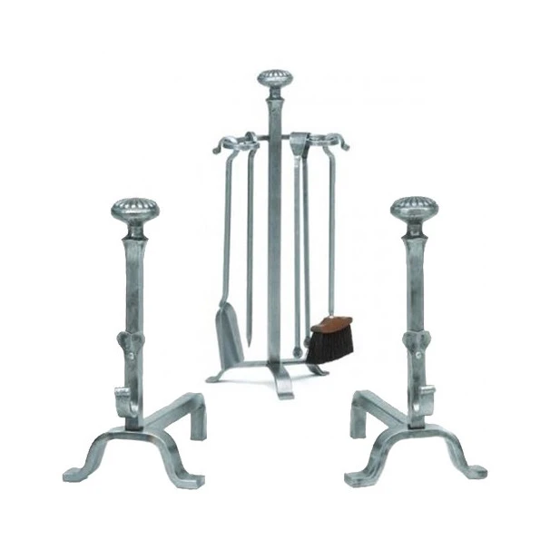 - Un serviteur tête marguerite et ses 4 accessoires : pelle à cendres, balai, tisonnier et pince à bûches
