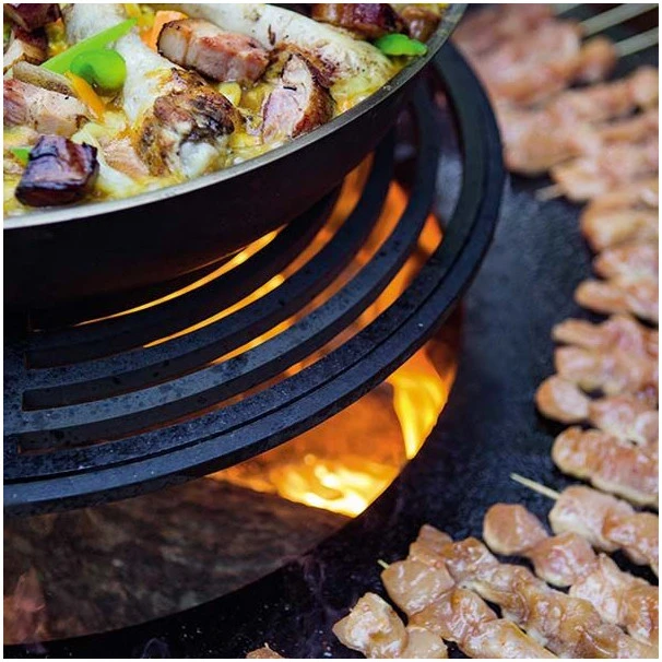 La grille de cuisson n’est compatible que pour la version OFYR 100. Cet accessoire barbecue est surélevé et non pas posé directement sur la plaque, afin d’insérer vos bûches dans la vasque pendant la cuisson.