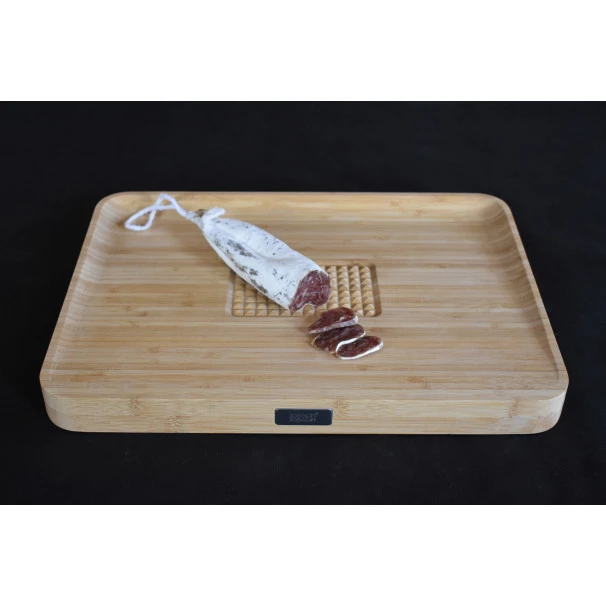 Cette planche à découper très résistante est dotée d’une poignée intégrée pour maintenir les préparations en place pendant que la découpe. De plus, elle possède une surface inclinée pour recueillir le jus ou la chapelure.