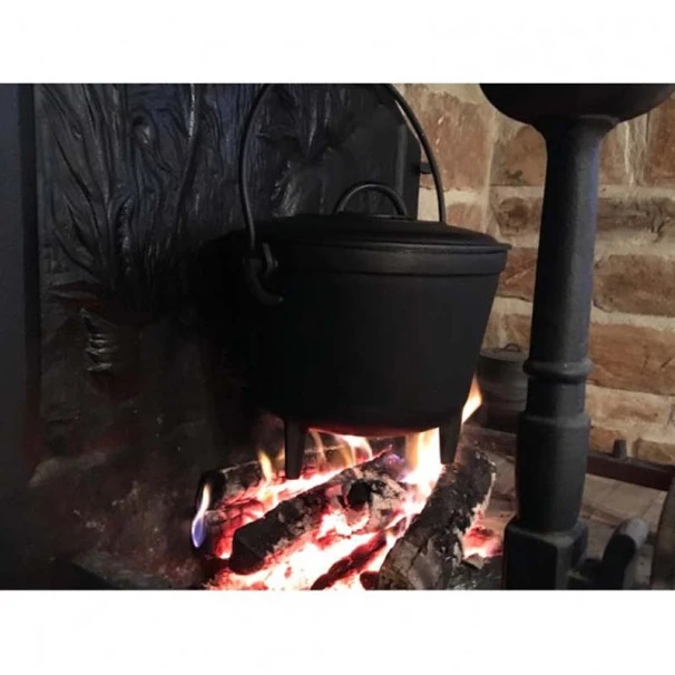 Accrochez la marmite à une crémaillère ou posez la directement sur les braises de votre feu de cheminée, braséro ou barbecue. Cet accessoire cheminée vous permettra de cuisiner au feu de bois en hiver.