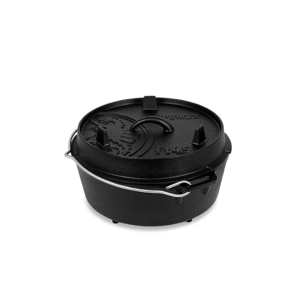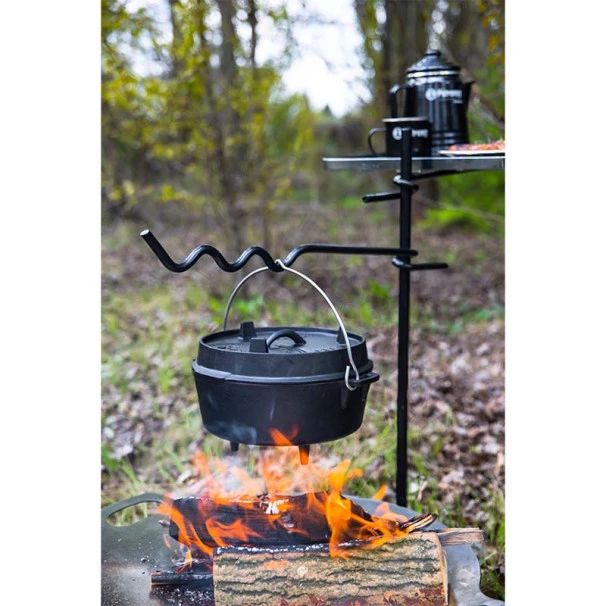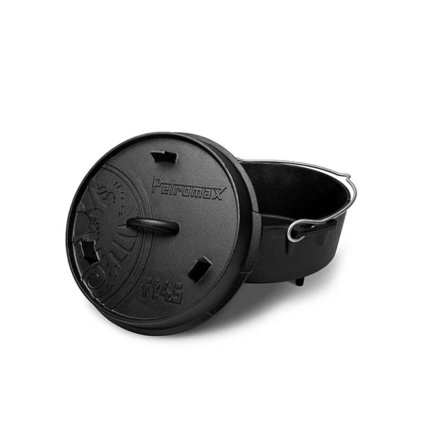 Grâce à sa fabrication en fonte, la chaleur est conservée et distribuée de manière très efficace. En plein air, la marmite peut être utilisée sur un feu ouvert ou bien avec du charbon et des briquettes. Grâce au bord élevé du couvercle, braises et charbon peuvent être placés sur la marmite en fonte. La marmite est ainsi chauffée de tous côtés.