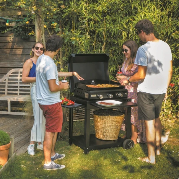 Ensemble plancha gaz Le Marquier Amalia 360 acier noir sur chariot acier :