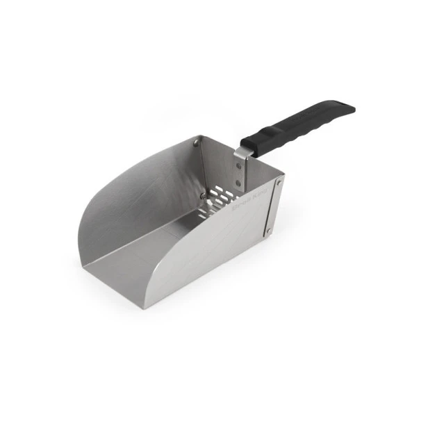 Cette pelle pratique permet de facilement ajouter des pellets dans votre barbecue à pellets. En acier inoxydable avec poignée en résine, cette pelle offre un tamis intégré pour éliminer la poussière. et des graduations permettant de mesurer la quantité de pellets désirée.