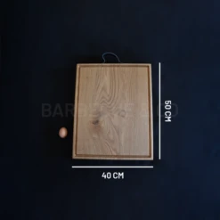 PRÉSENTATION DE LA PLANCHE À DÉCOUPER AVEC RIGOLE 50×40 CM EN CHÊNE MASSIF