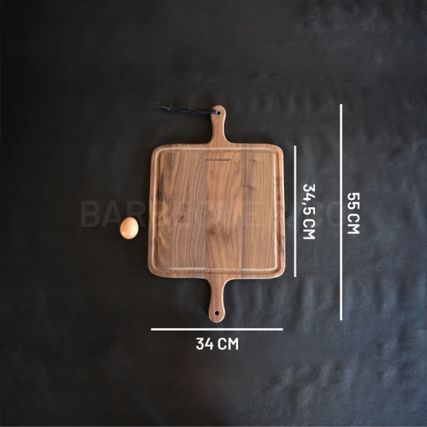 PRÉSENTATION DE LA PLANCHE À DÉCOUPER EN NOYER MASSIF 34 X 55 CM