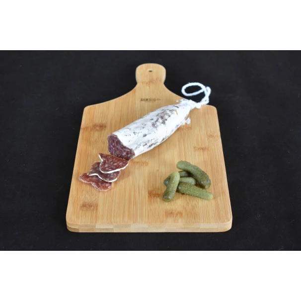 Présentation de la planche à découper avec manche en bambou 39x20cm