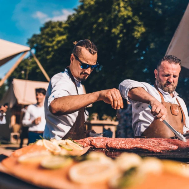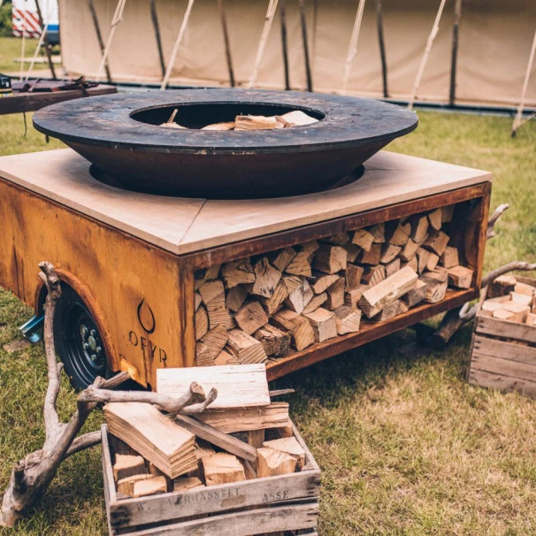 OFYR révolutionne la façon de cuisiner en extérieur. Grâce à sa forme, vos convives se rassemblent autour du feu et du chef.
