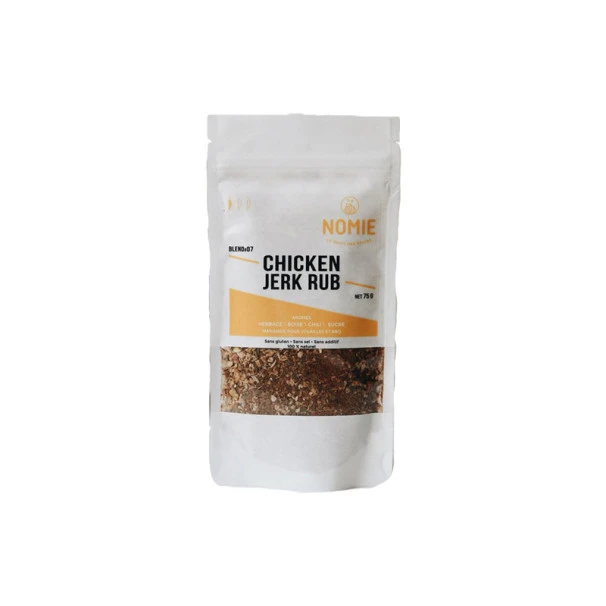 Le Chicken Jerk Rub est un mélange d’épices herbacé, boisé et légèrement sucré, avec une touche de piment de Cayenne à frotter sur une volaille, avant cuisson au barbecue, à la plancha, au four ou à la poêle. Utilisez-le en marinade sèche, ou mélangez-le à de l’huile, moutarde, ou sauce ketchup. Il faut frotter la viande avec le mélange comme pour un massage, afin que les épices pénètrent et donnent un vrai goût à la viande. Idéalement, laissez mariner de 3h à une nuit au frigo.
