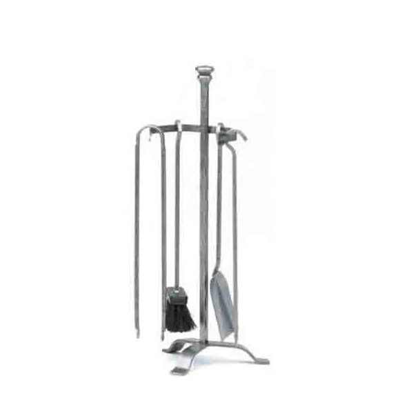 Le serviteur prend la forme d’une colonne avec 4 crochets pour y placer les 4 accessoires (compris avec) servant à l’entretien de la cheminée : pelle à cendres, balai, tisonnier et pince à bûches.