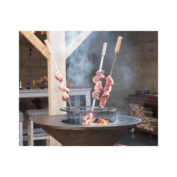 Votre set comprend : un anneau pour tenir les broches et 3 broches en acier inoxydable avec manche en bois.