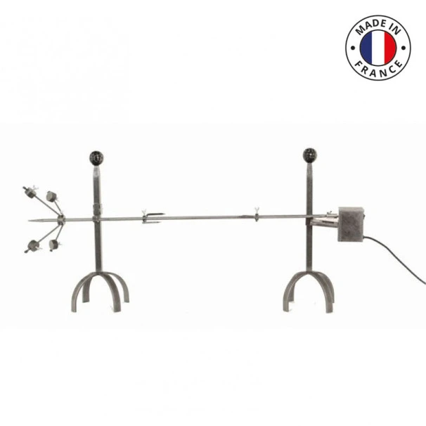 - Ce tournebroche dispose d’un moteur électrique pouvant retourner un gibier de 25 kg maximum (2t/min).